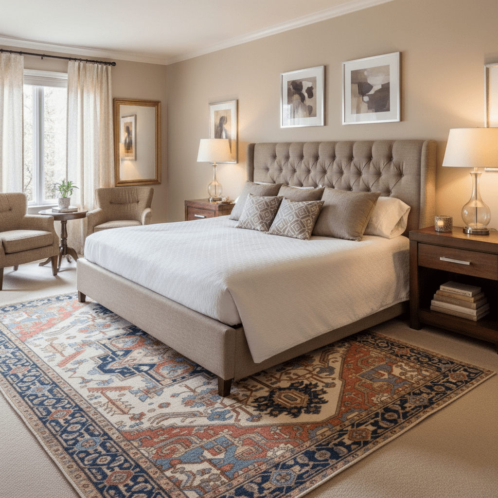 Size & Scale: Bigger is better — a rug that’s too small makes a room look disjointed. Let your furniture anchor the edges.