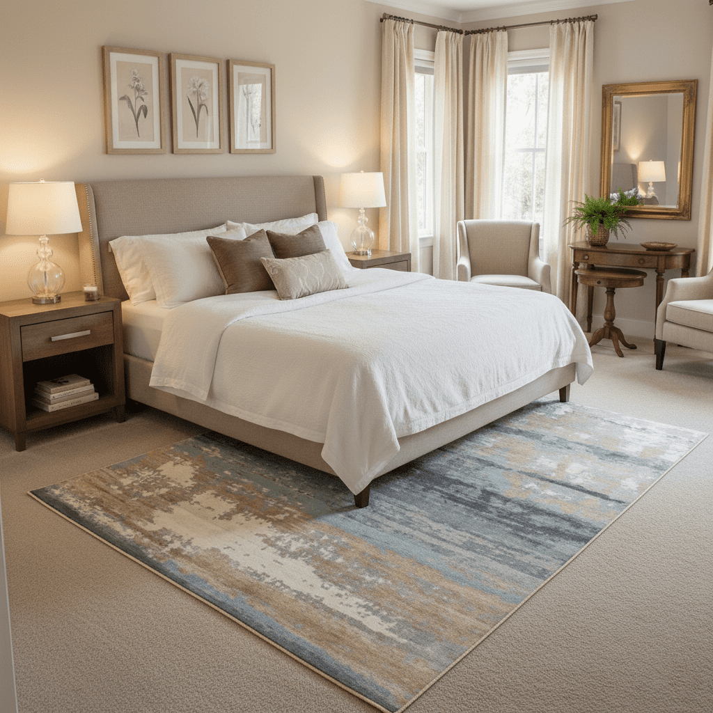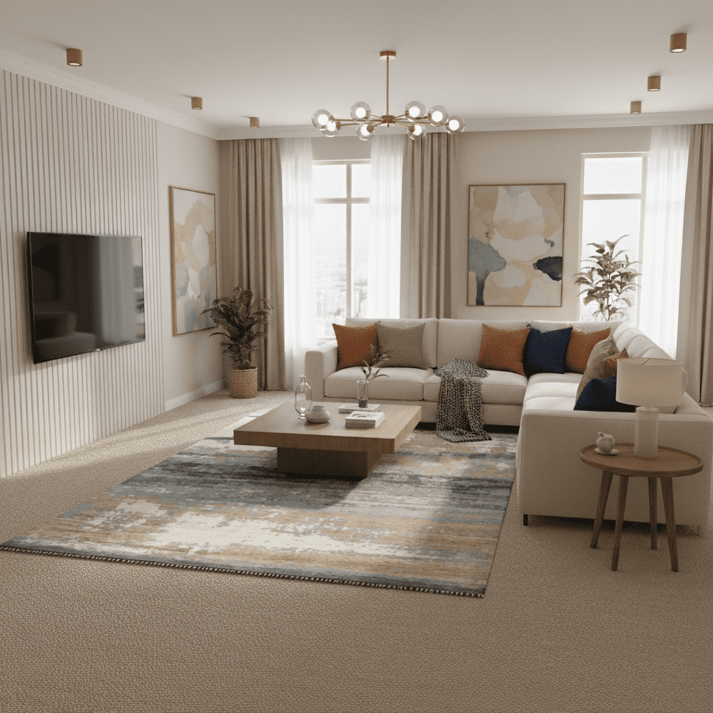 Pile & Weave: Flat-weave rugs lie low and are easier to clean; longer pile gives softness and depth but needs more upkeep.