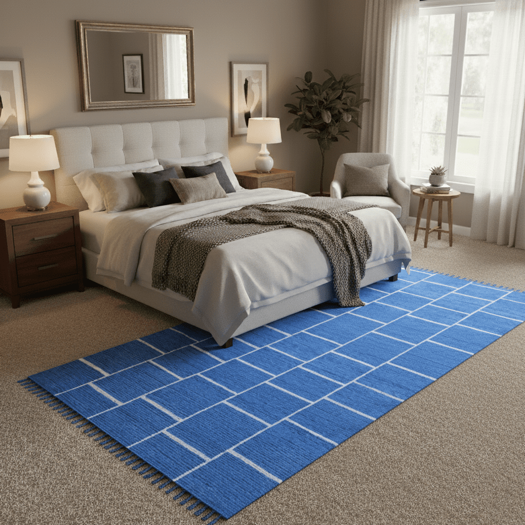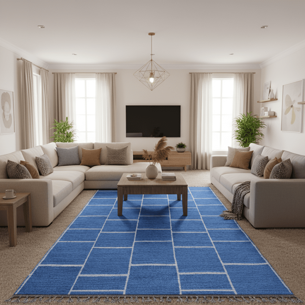 Pile & Weave: Flat-weave rugs lie low and are easier to clean; longer pile gives softness and depth but needs more upkeep.