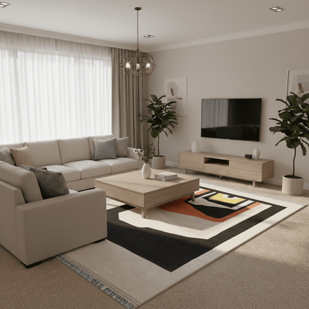 Pile & Weave: Flat-weave rugs lie low and are easier to clean; longer pile gives softness and depth but needs more upkeep.