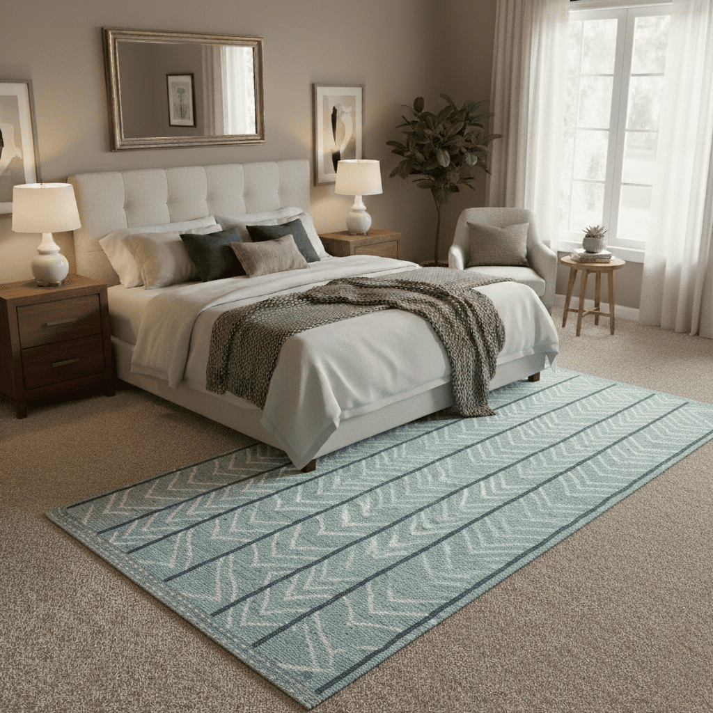 Pile & Weave: Flat-weave rugs lie low and are easier to clean; longer pile gives softness and depth but needs more upkeep.