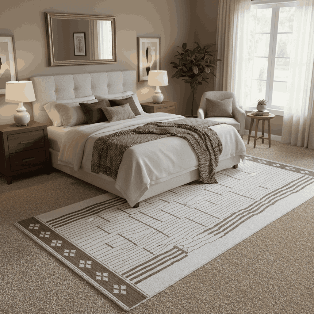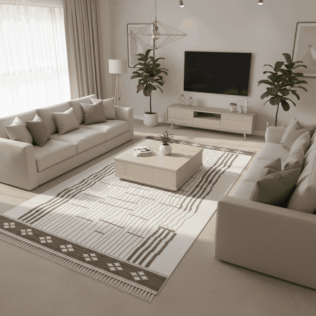 Pile & Weave: Flat-weave rugs lie low and are easier to clean; longer pile gives softness and depth but needs more upkeep.
