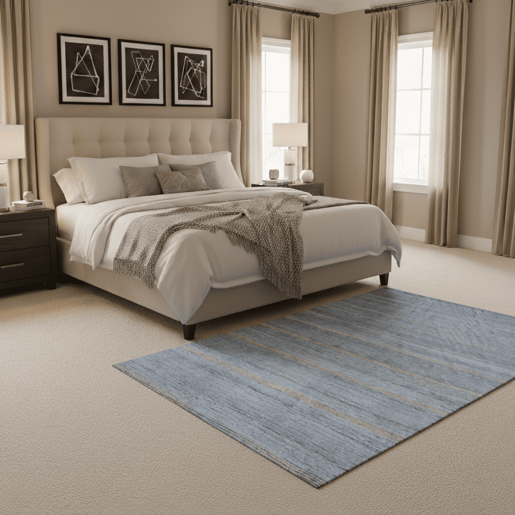 Pile & Weave: Flat-weave rugs lie low and are easier to clean; longer pile gives softness and depth but needs more upkeep.