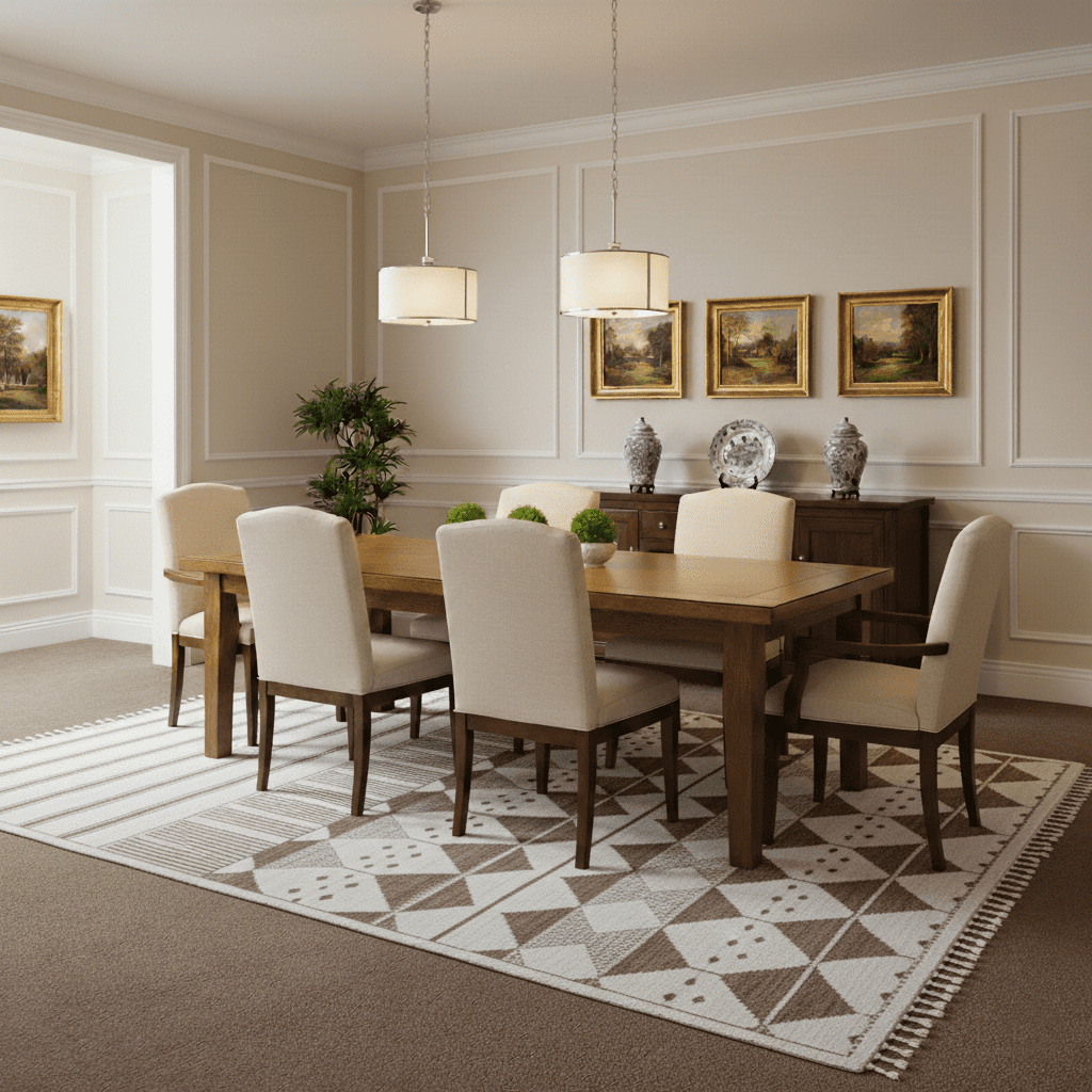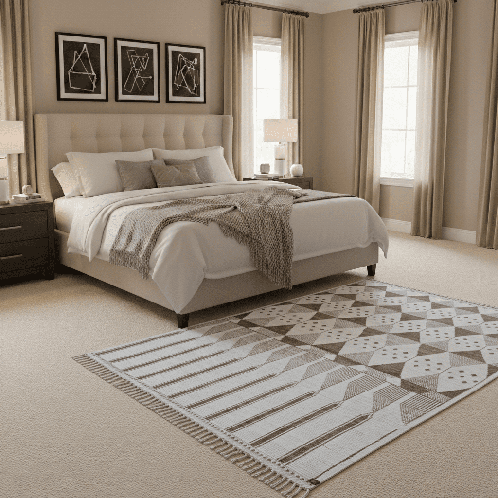 Pile & Weave: Flat-weave rugs lie low and are easier to clean; longer pile gives softness and depth but needs more upkeep.
