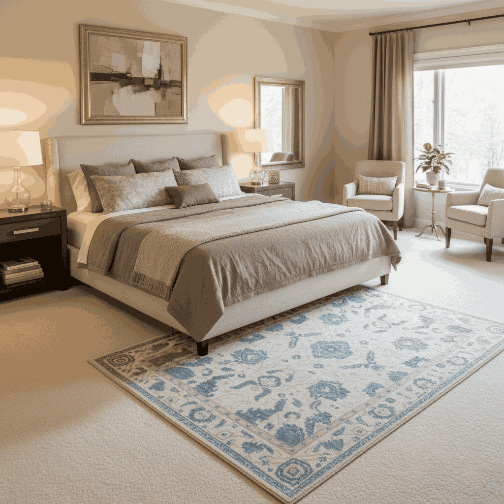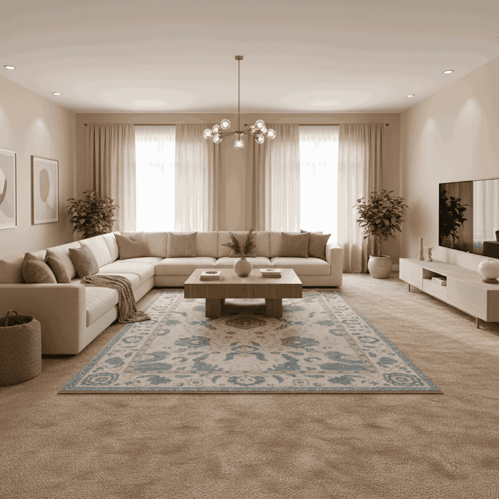 Pile & Weave: Flat-weave rugs lie low and are easier to clean; longer pile gives softness and depth but needs more upkeep.