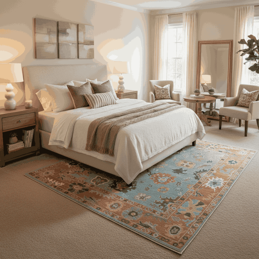 Pile & Weave: Flat-weave rugs lie low and are easier to clean; longer pile gives softness and depth but needs more upkeep.