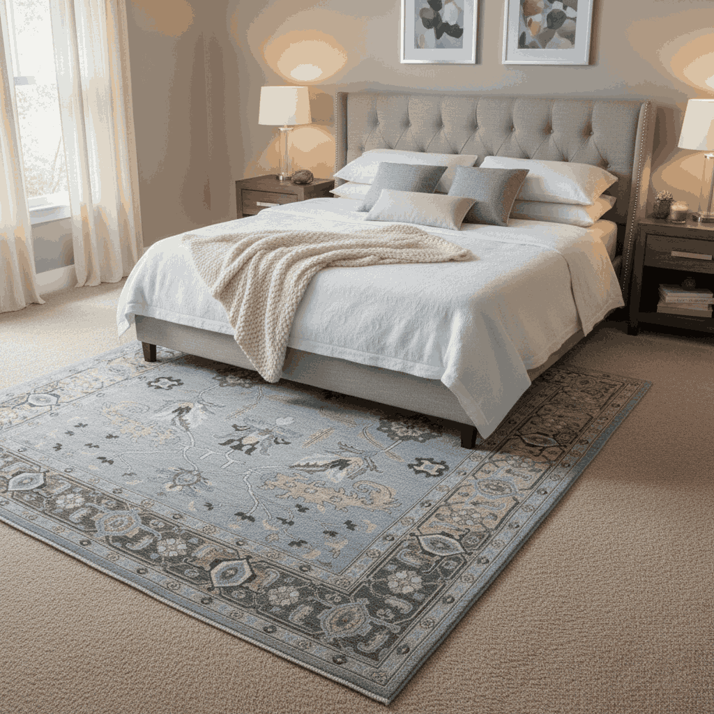 Pile & Weave: Flat-weave rugs lie low and are easier to clean; longer pile gives softness and depth but needs more upkeep.