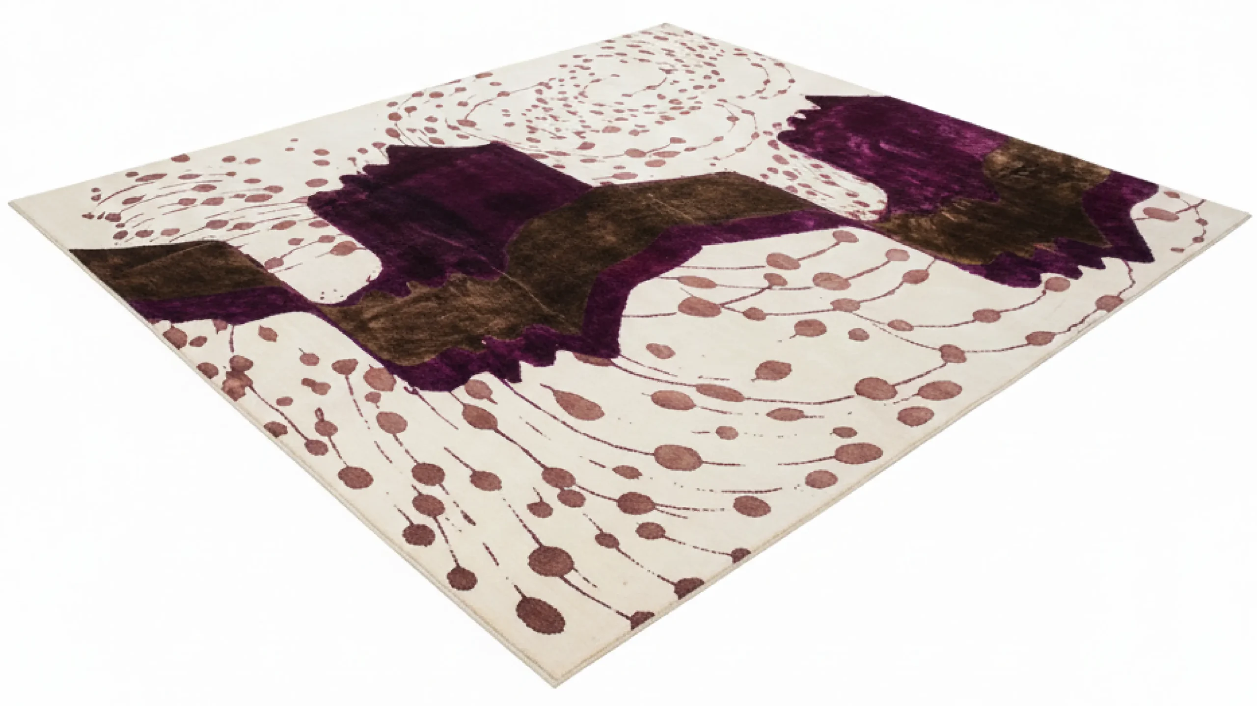The silk fibers lend a subtle lustrous sheen, while the wool base adds depth, warmth, and durability. Together, they produce a rich texture that feels luxurious underfoot. The design reflects an artistic sensibility — elegant motifs, balanced color transitions, and clean lines that echo contemporary aesthetics while honoring craftsmanship.
