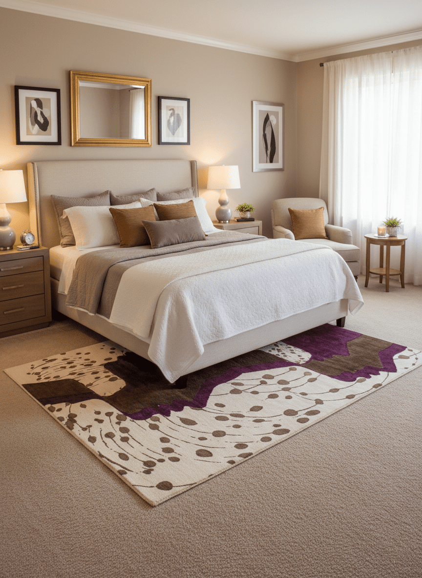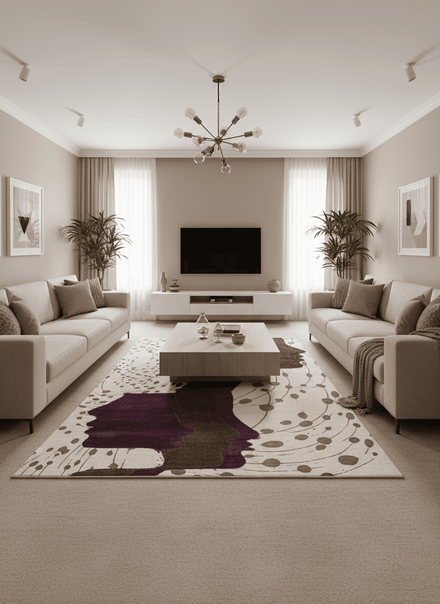 Pile & Weave: Flat-weave rugs lie low and are easier to clean; longer pile gives softness and depth but needs more upkeep.