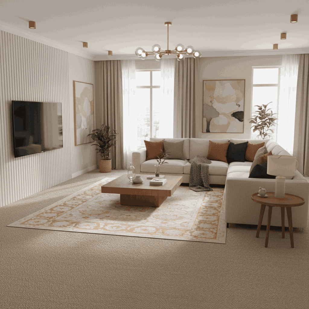 Pile & Weave: Flat-weave rugs lie low and are easier to clean; longer pile gives softness and depth but needs more upkeep.