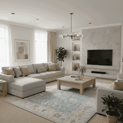 Size & Scale: Bigger is better — a rug that’s too small makes a room look disjointed. Let your furniture anchor the edges.
